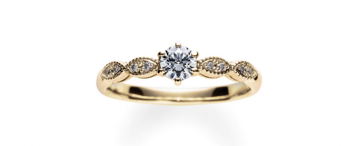 指輪の素材が18金イエローゴールドのモデルもございます。クラシカルな雰囲気が漂うモデルです。例)0.20カラットの場合¥233,000(税込)~