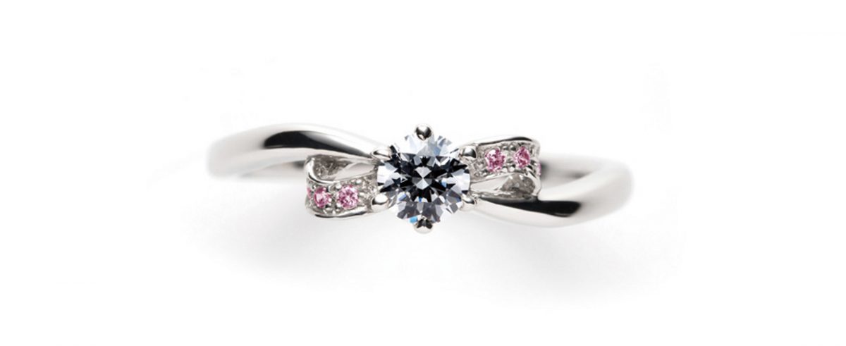 サイドの小粒石がピンクサファイヤのモデルもございます。華やかで可愛らしいです。¥218,000(税込)~