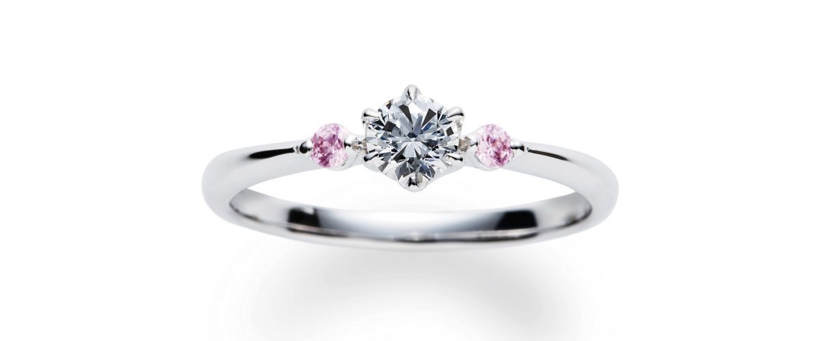 サイドの小粒石がピンクサファイヤのモデルもございます。華やかで可愛らしいです。¥208,000(税込)~