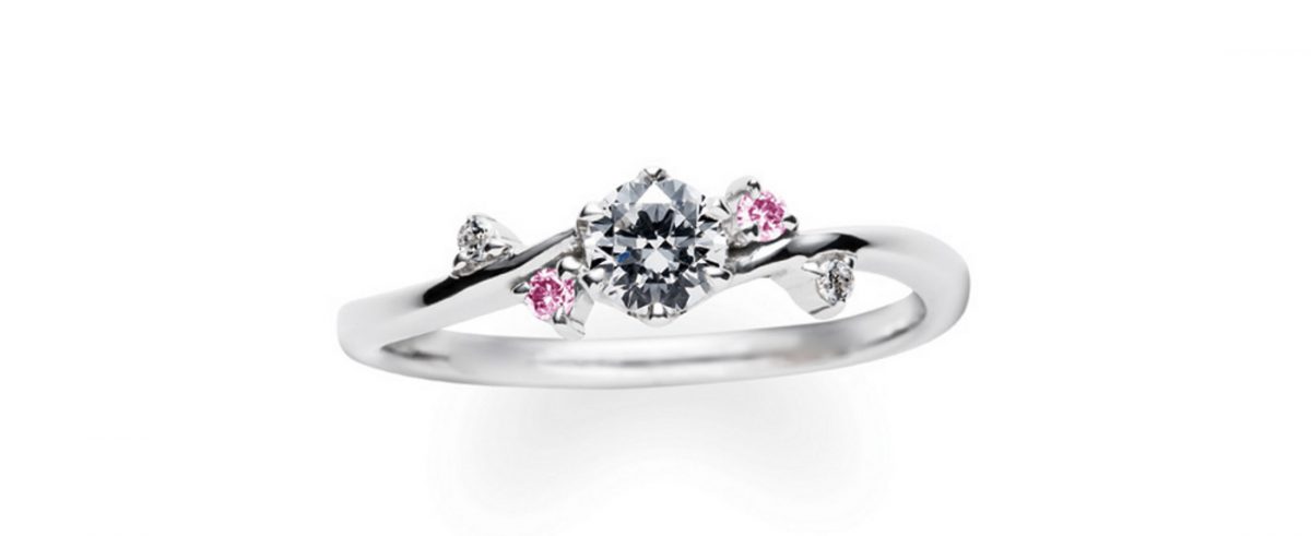 サイドの小粒石がピンクサファイヤのモデルもございます。華やかで可愛らしいです。¥228,000(税込)~