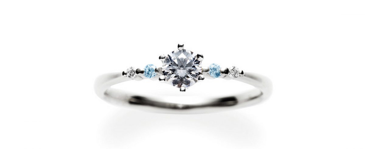 サイドの小粒石がアイスブルーダイヤのモデルもございます。爽やかな印象が魅力的です。例)0.20カラットの場合¥235,000(税込)~