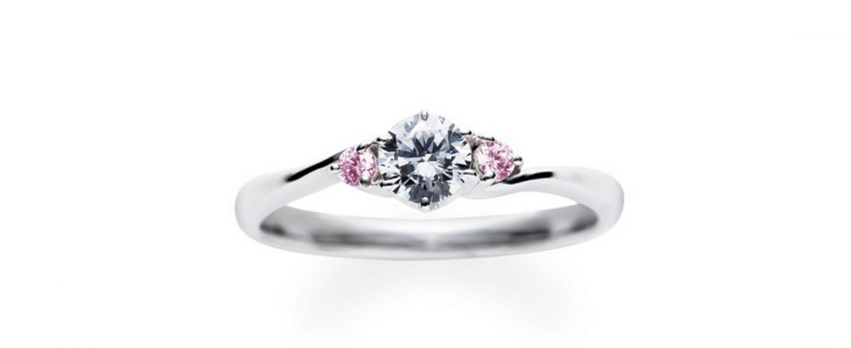 緩やかなSラインのカーブが優しい印象の「レッドクローバー」。定番の人気デザイン。センターのダイヤモンドに寄り添うように、メレ石が左右に1石ずつ配置されています。メレ石の種類をダイヤモンドやピンクサファイアやアイスブルーダイヤなどアレンジも可能。ちなみに商品名「レッドクローバー」の花言葉は「豊かな愛」です。