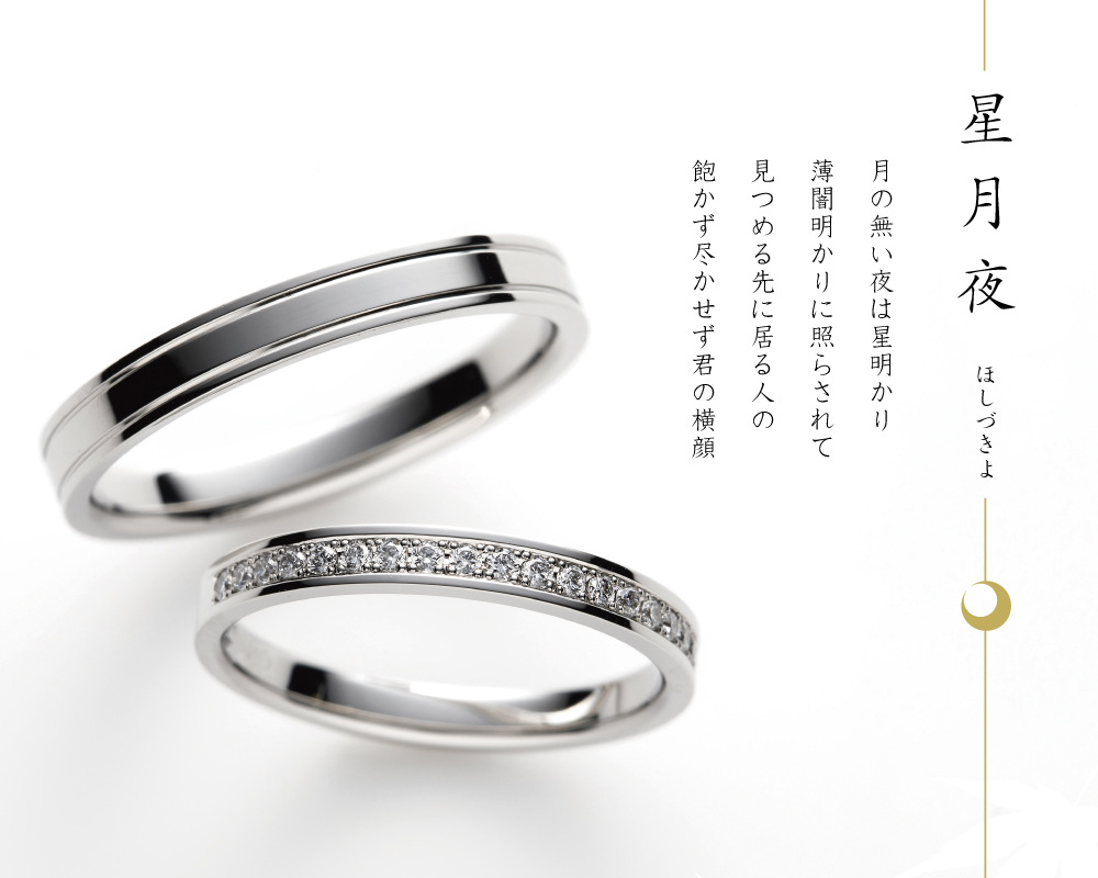 日本の四季の美しい風景、その一瞬を切り取った和の趣の落ち着いたデザイン。「星月夜」は彼女の横顔を照らす美しい星の瞬きをモチーフに作られました。