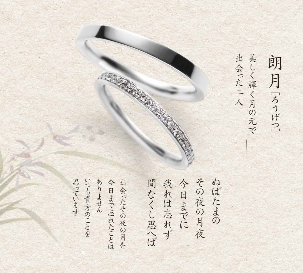月暦のブライダルリングはひとつひとつに「月と恋」を詠った和歌があり、その内容をイメージしてデザインされています。