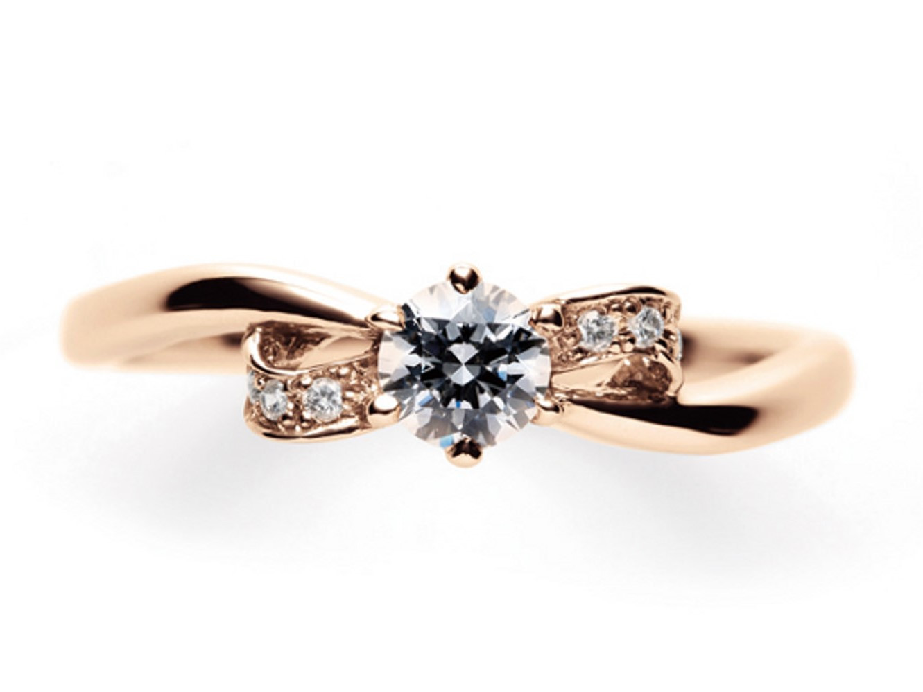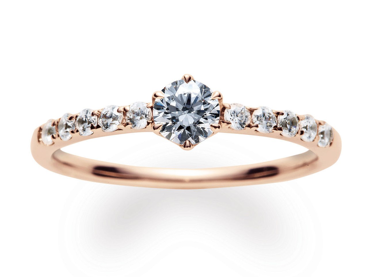 センターダイヤを囲うように5枚の花びらを付けたかわいらしいデザイン。