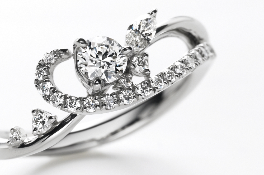 ダイヤモンドを華やかに演出する、繊細で美しい曲線デザインが、大人の指にフィットします。