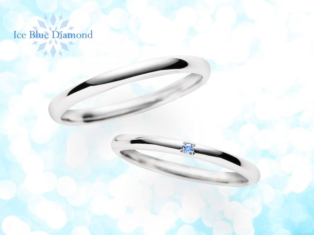 アイスブルーダイヤは、「永遠」「純粋」「誠実」「愛情」を象徴する宝石とされ、結婚指輪にピッタリの宝石と言えます♥