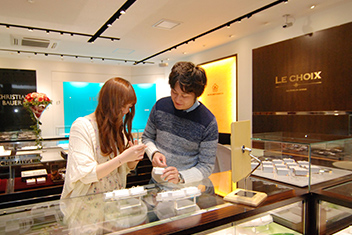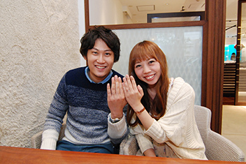良行さまは「彼女の好みの指輪を選べるから」と仮リングプロポーズをご選択されました♪ プロポーズ後日おふたりでご来店になり、千尋さまは終始笑顔でとても嬉しそうにデザインを選んでいらっしゃいましたね(#^.^#)お喜びいただけて何よりです♪
