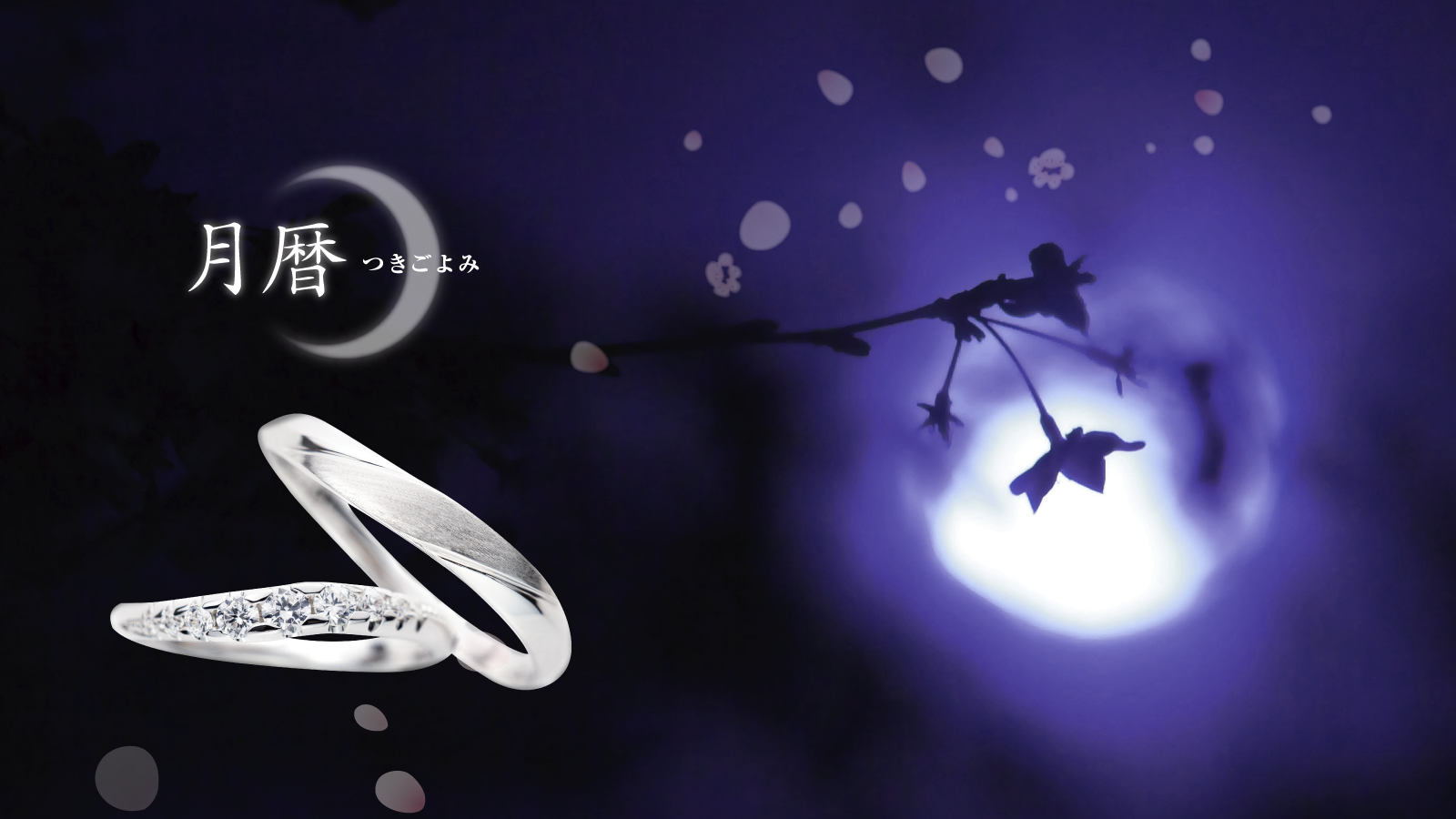 ブランド「月暦 -つきごよみ-」は、月に映した恋する想いをしたためた和歌の世界観を表現したものです。その奥ゆかしく繊細な想いをデザインに込めて、優美なフォルムの結婚指輪が誕生しました。