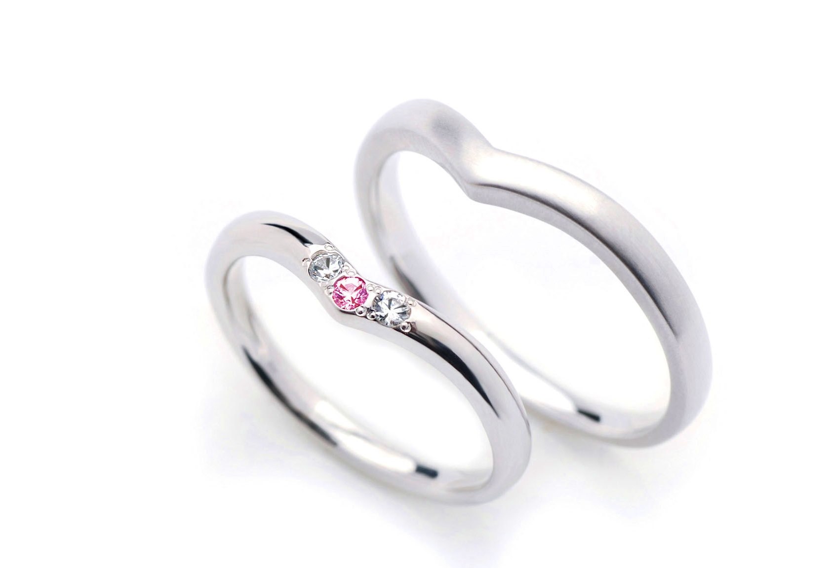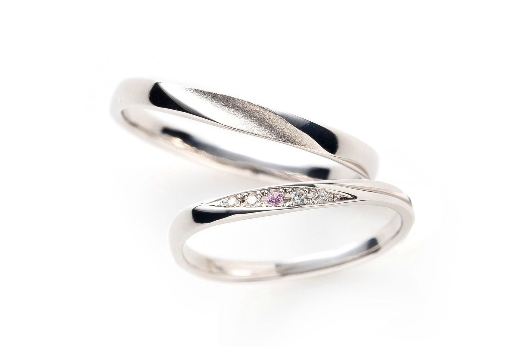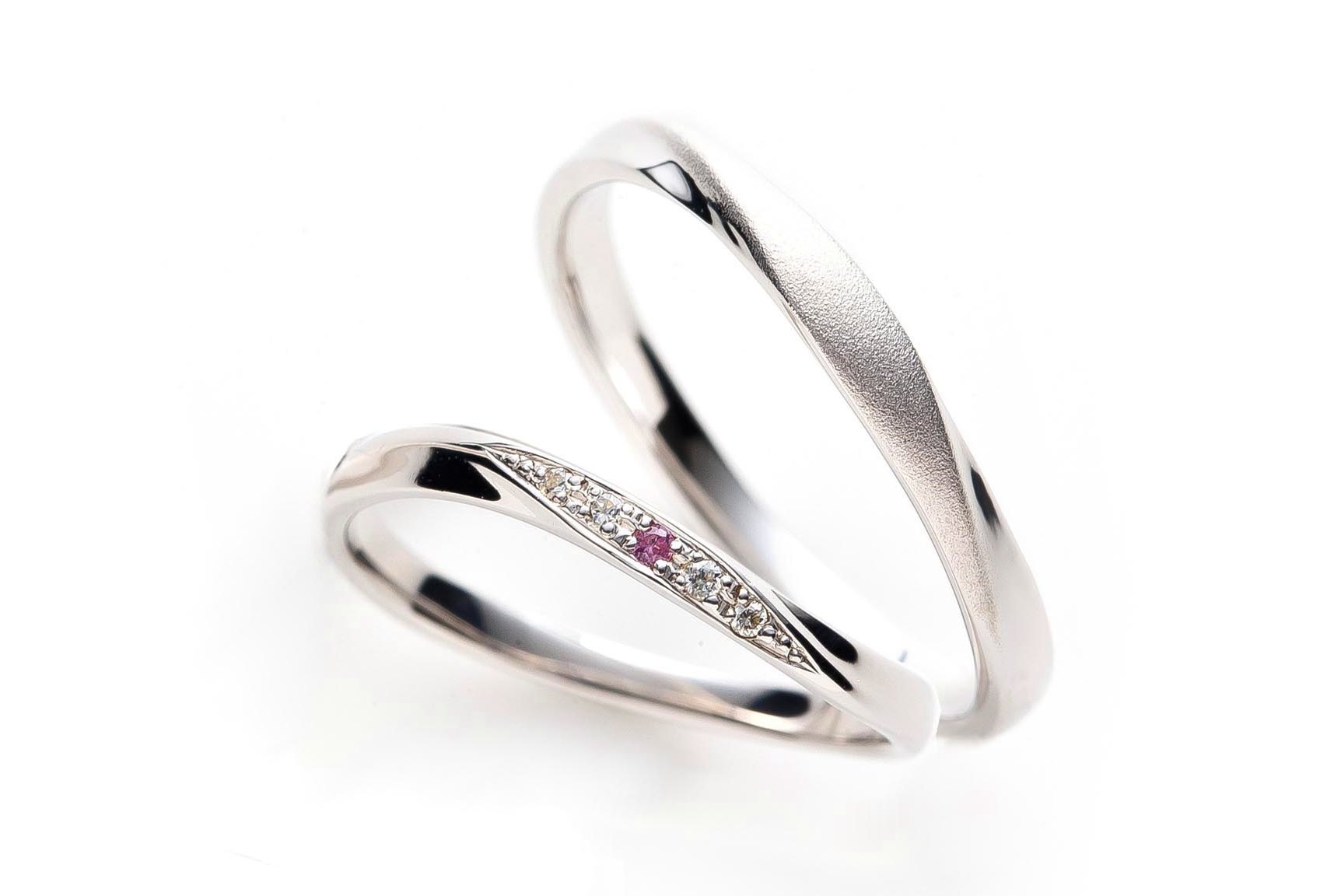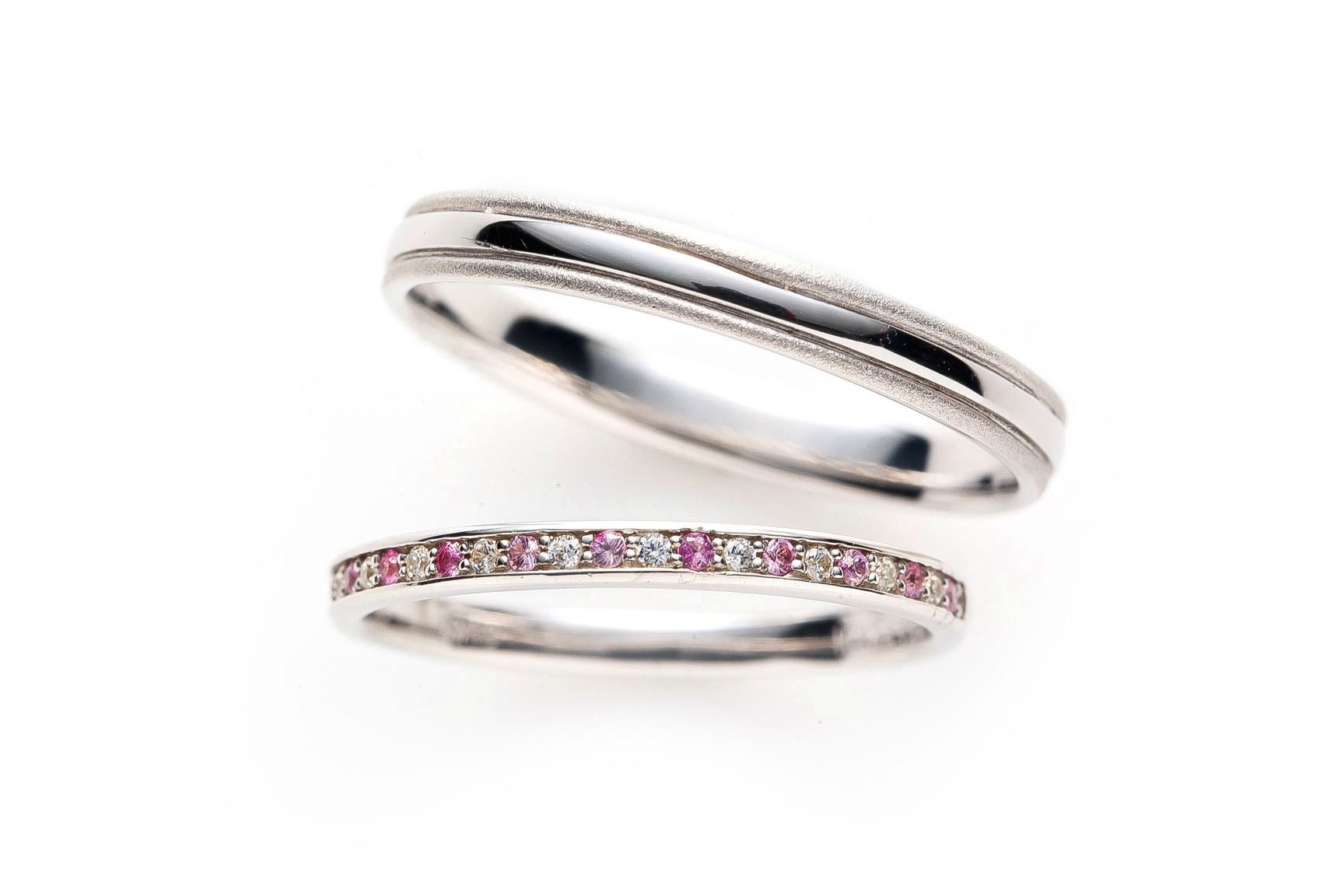 ピンクの色合いがとっても可愛いピンクダイヤモンドとピンクサファイヤの結婚指輪。