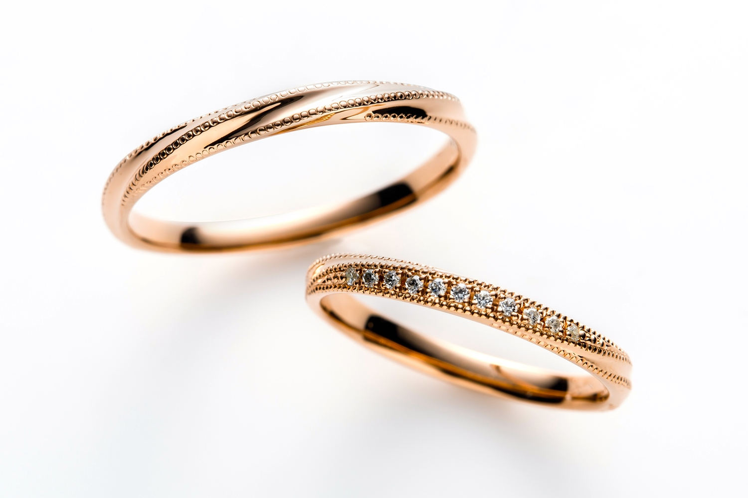 この他にも様々なデザインでピンクゴールドの結婚指輪をご用意しております。