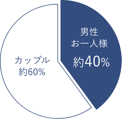 ご来店のお客様の約40%は、男性お一人様でいらっしゃっています。