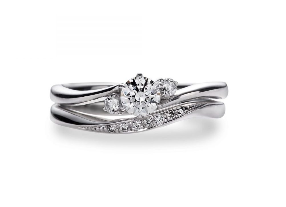 細身スレンダーに優美な曲線。色気と上品さを併せ持っているリングです。さらに程よく立体的にエッジを効かせているので、男性のお客さまの指にもフィットします。プラチナモデルもございます。