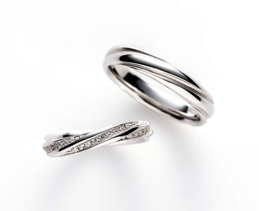 繰り返す波模様のように凹凸が連続する個性的なデザインです。Men’sはストレートでつや消しと鏡面加工を交互に配置したスタイリッシュな雰囲気。Ladies’はSラインカーブにダイヤモンドの流れを3列作り、非常にラグジュアリーな雰囲気を楽しんでいただけます。