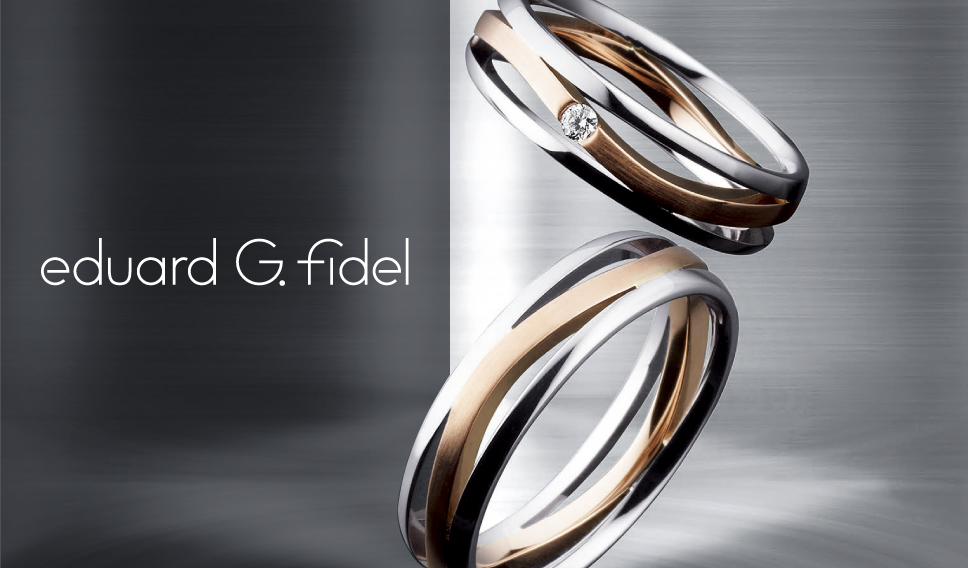 レッドゴールドとホワイトゴールドを何層にも重ね合わせ、ねじりながら叩き鍛えていくことで生まれる複雑な模様が渋さを醸し出しています。上下の両フチは段差を付けたデザインです。