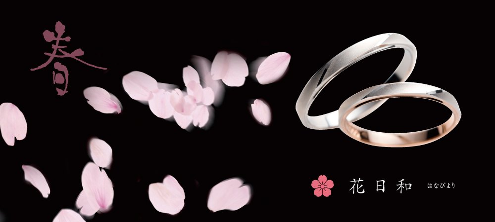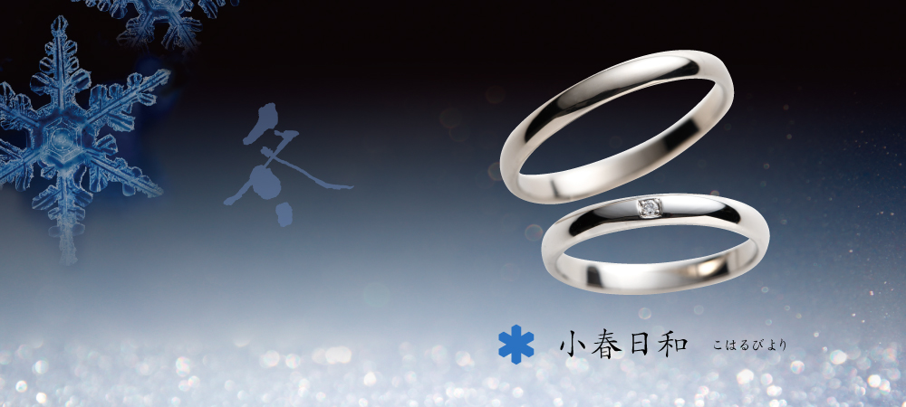 ふたりで過ごす季節の移ろい、ふたりで見つめる美しい日本の四季の姿をモチーフにデザインされた【雪月花】のブライダルリング。さりげない日々の変化にも彩りを感じ、細やかな喜びに幸せを感じられる日常を。