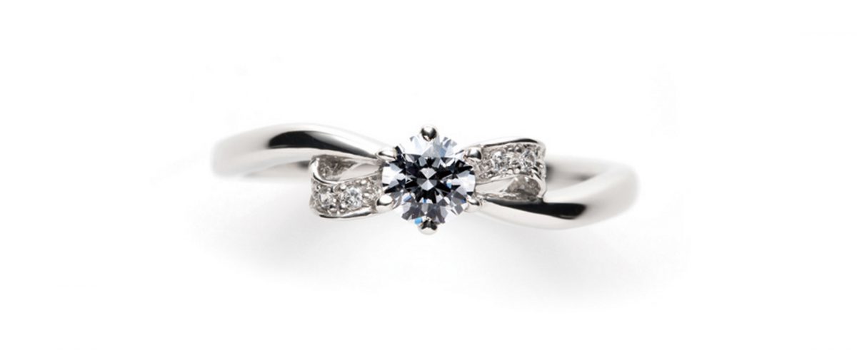サイドの小粒石がホワイトダイヤのモデルもございます。清楚な印象が素敵です。例)0.20カラットの場合¥218,000(税込)~