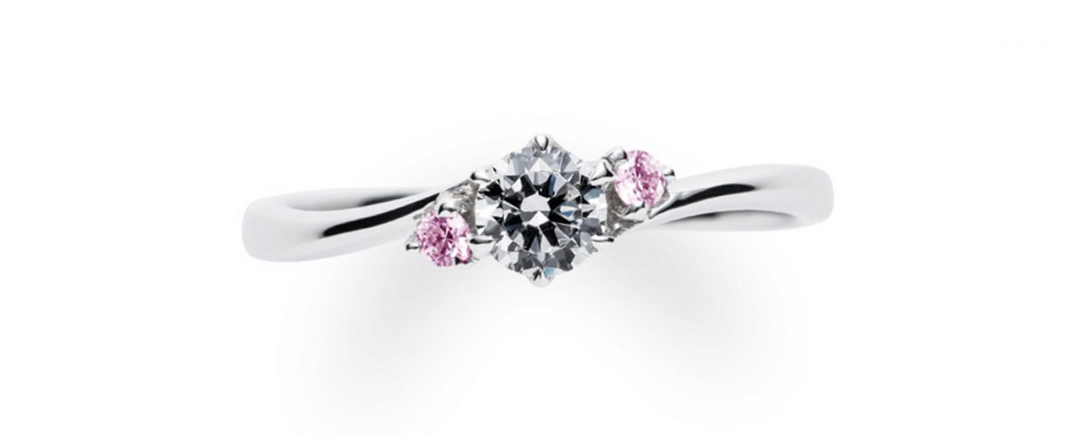 サイドの小粒石がピンクサファイヤのモデルもございます。華やかで可愛らしいです。¥208,000(税込)~