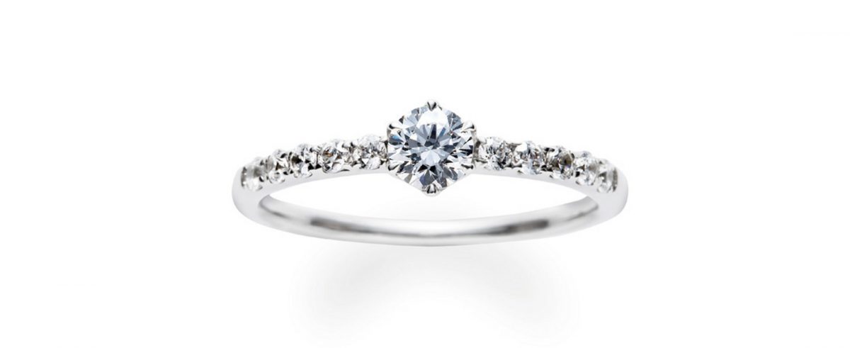 サイドの小粒石がアイスブルーダイヤのモデルもございます。爽やかな印象が魅力的です。例)0.20カラットの場合 ¥398,000(税込)~