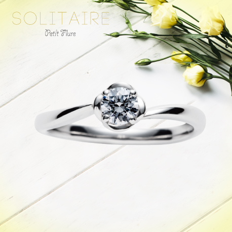 SANJIオリジナルブランド「SOLITAIRE」by petit flureは、センターのダイヤモンド1石を主役にした大人可愛い婚約指輪デザイン。当店の人気ブランドです。