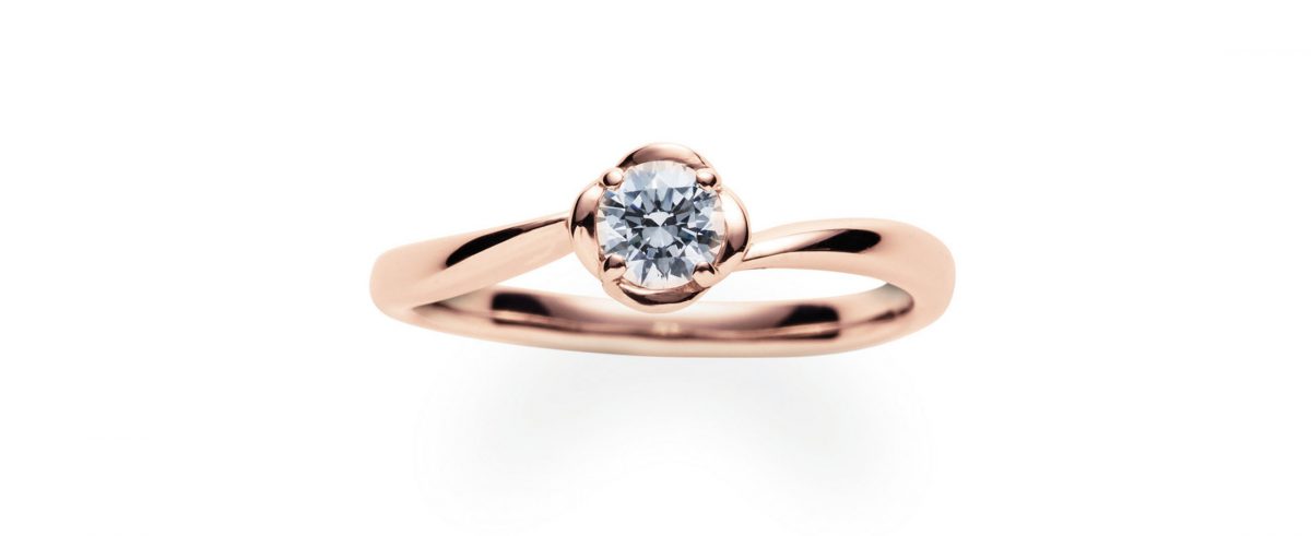 指輪の素材が18金ピンクゴールドのモデルもございます。温かみのある優しい印象に。 例)0.20カラットの場合¥205,000(税込)~