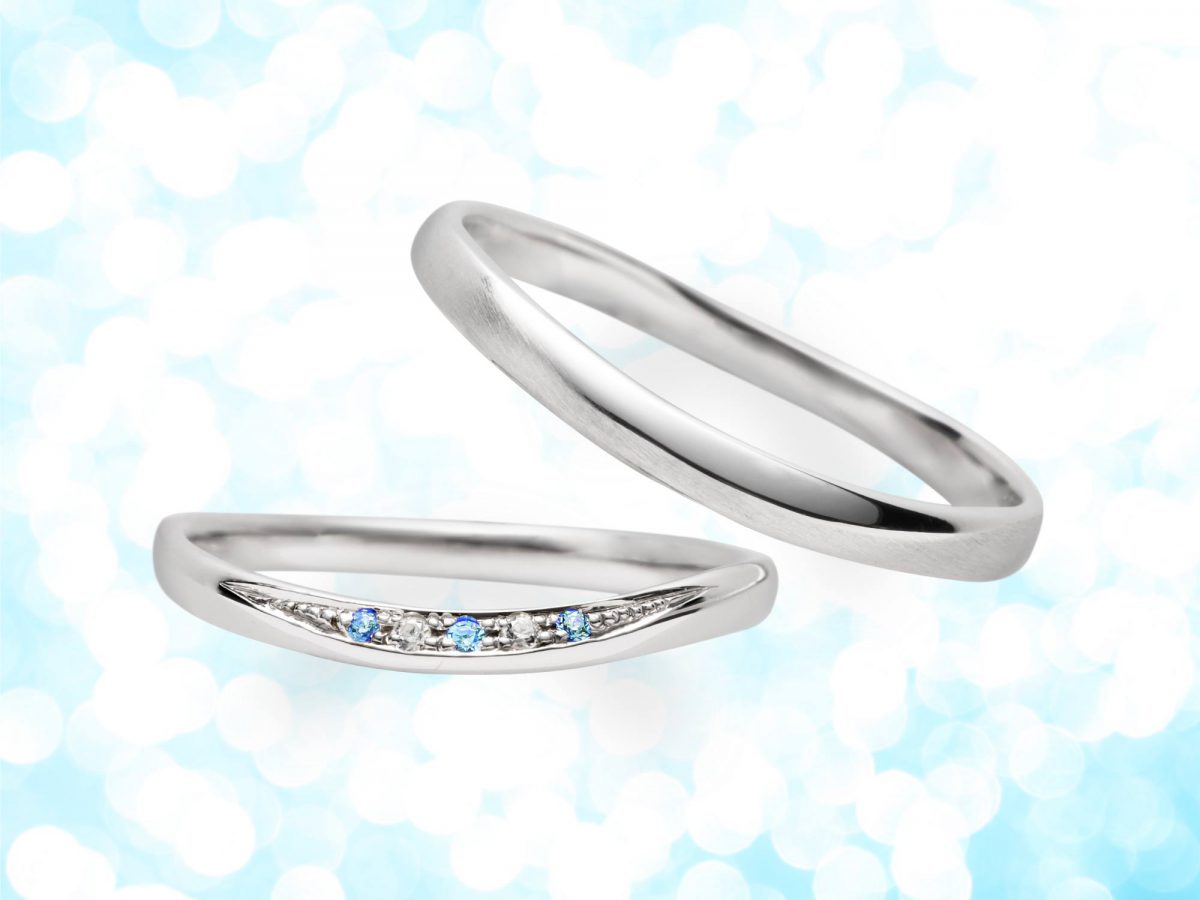 アイスブルーダイヤモンドのモデルもございます。キュートで華やかな印象です。プラチナ素材 Ladies’¥145,000(税込)